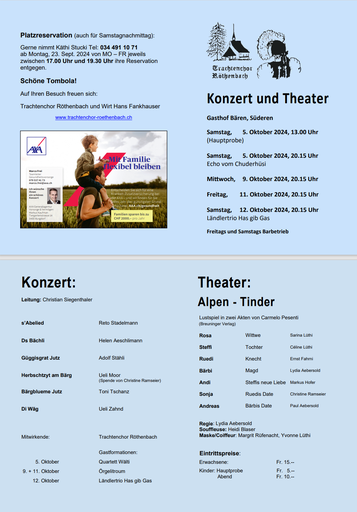 Unser Konzert und Theater findet dieses Jahr am 5., 9., 11. und 12. Oktober 2024 statt.